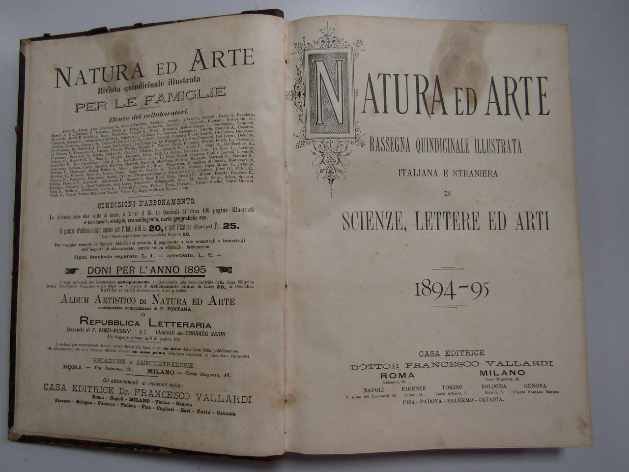 AA.VV. NATURA ED ARTE. Rivista Quindicinale Illustrata. VALLARDI. Vol. 3 1894 - 1895