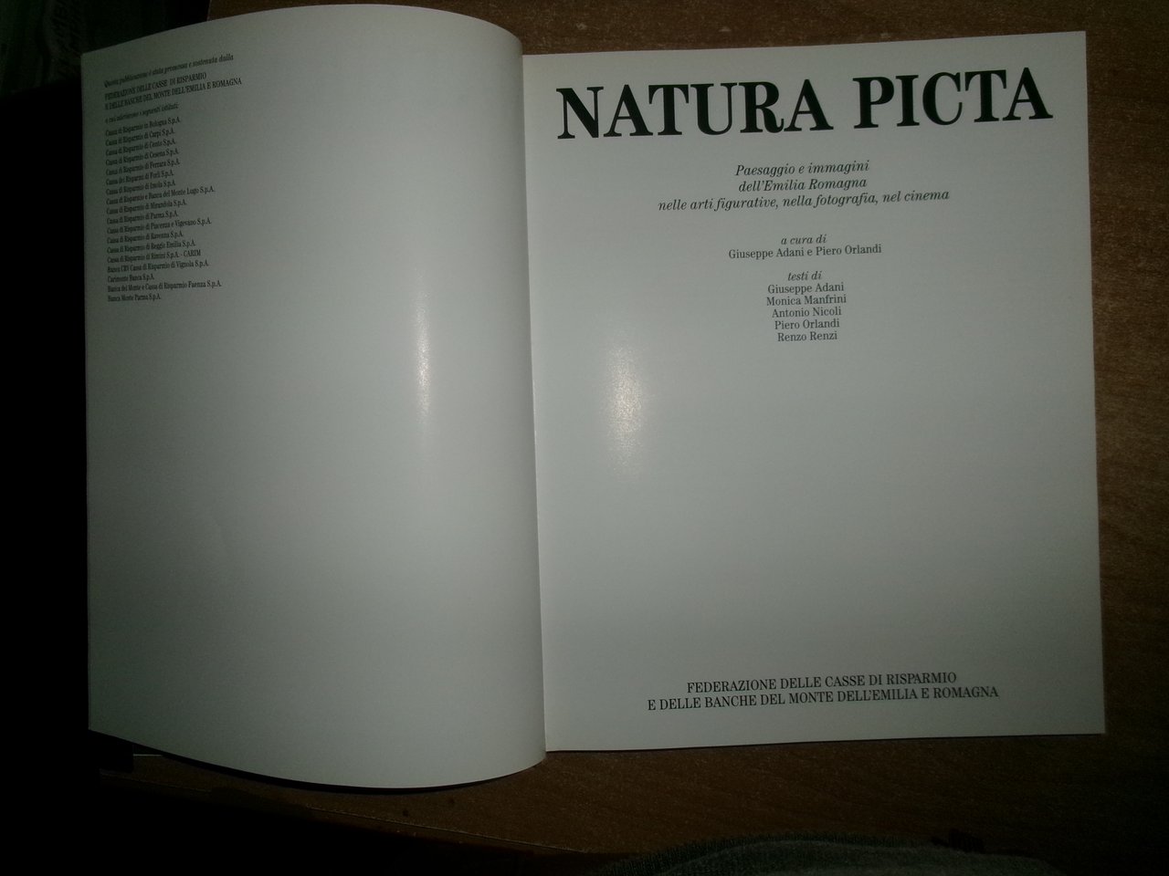 AA.VV. NATURA PICTA. Paesaggio e immagini dell' Emilia Romagna nelle Arti figurative, nella fotografia, nel cinema. A cura di Giuseppe Adani e Piero Orlandi. Milano, Amilcare Pizzi, 1992. In-4°, tela verde edit. con sovracopertina ill. a col. 253 pp. con numerose illustrazioni a colori e in bianco e nero n.t. Ottimo stato. Uff. C - IV - 5 - 2
