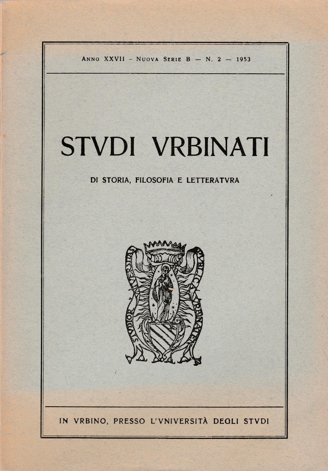 Aa.Vv. Studi Urbinati Anno Xxvii Nuova Serie B N.2 1953-L4519