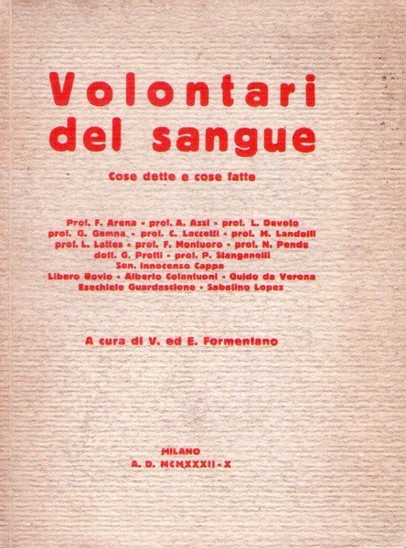 *AA VV. Volontari del sangue. Cose dette e cose fatte. Avis. 1932