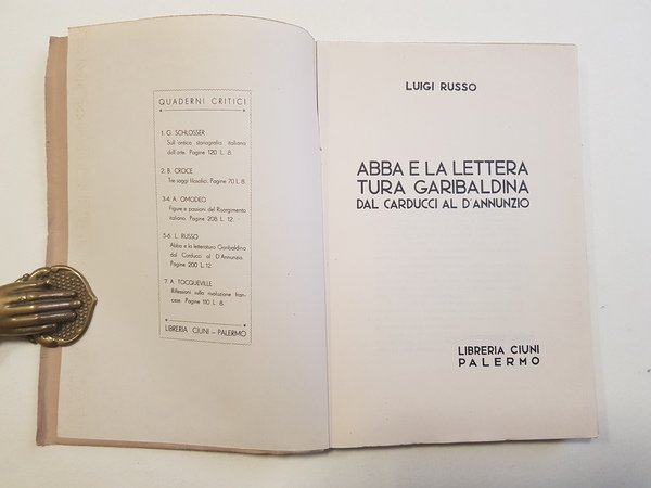 Abba e la letteratura garibaldina dal Carducci al D'Annunzio.