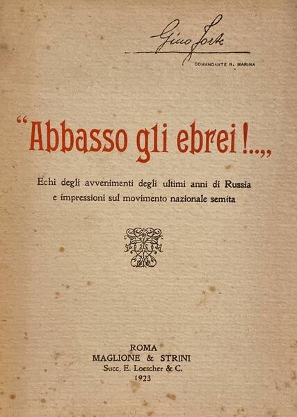 Abbasso gli ebrei!.Echi degli avvenimenti degli ultim anni di Russia e impressioni sul movimento nazionale semita