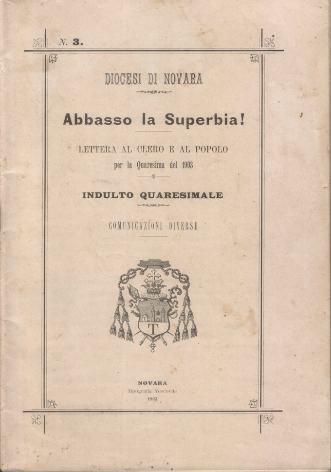 Abbasso la Superbia! Lettera al Clero e al Popolo per la Quaresima del 1903. Indulto Quaresimale. Comunicazioni diverse