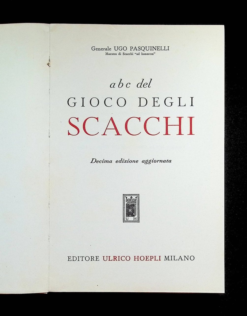 Abc Degli Scacchi - Libro Ugo Pasquinelli - Decima Edizione Hoepli Manuale 1965