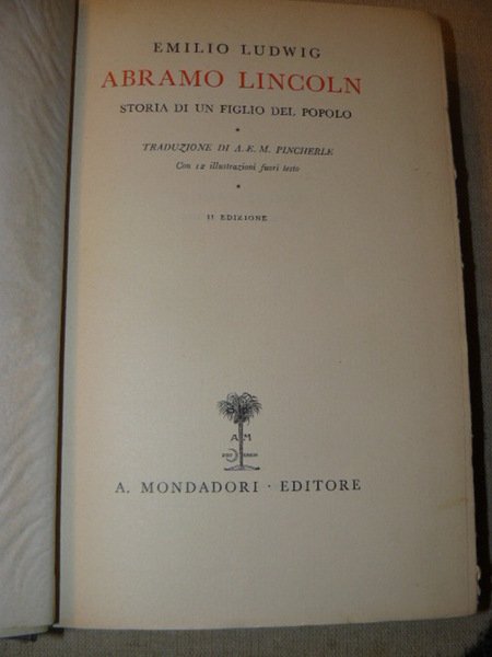 Abramo Lincoln. Storia di un figlio del popolo. Traduzione di A.E.M. Pincherle. Con 12 illustrazioni fuori testo. II edizione