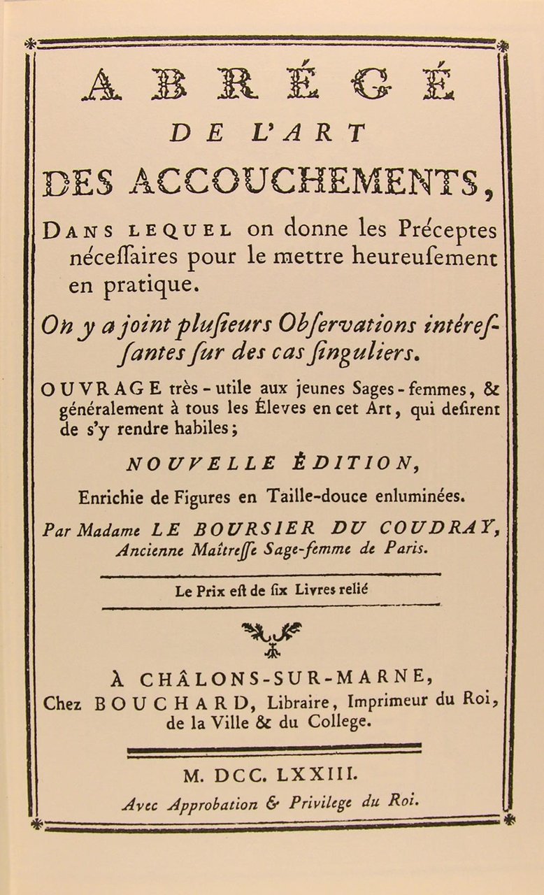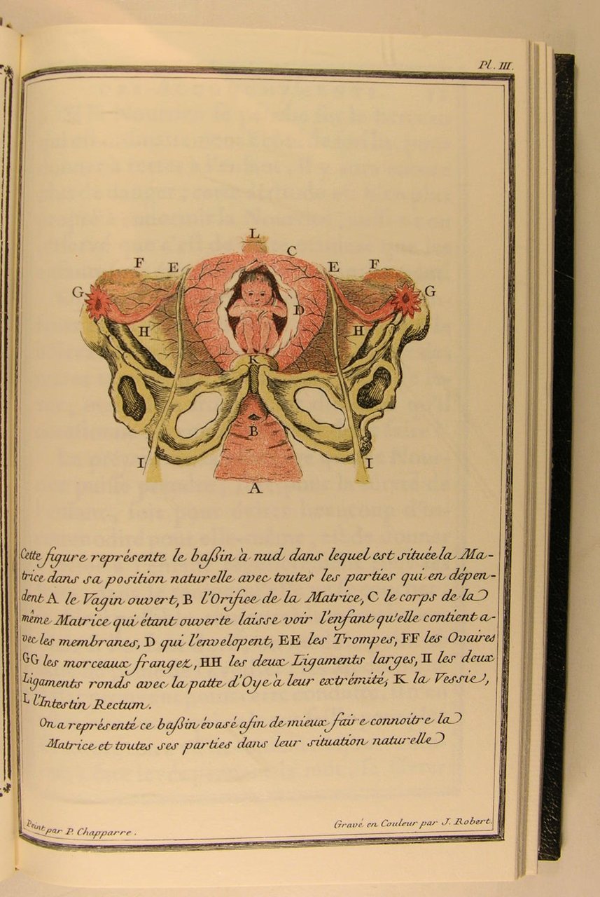 Paris, Éditions Roger Dacosta, 1976, reliure éditeur reprint sur l'édition Châlons sur Marne, chez Bouchard, 1773. X,185,[4] p., portrait en noir, 26 gravures en couleurs. (Nouvelle édition, enrichie de figures en taille-douce enluminées par madame Le Boursier du Coudray, ancienne Maîtresse Sage-femme de Paris). Exemplaire numéroté sur papier vergé à la forme ronde.