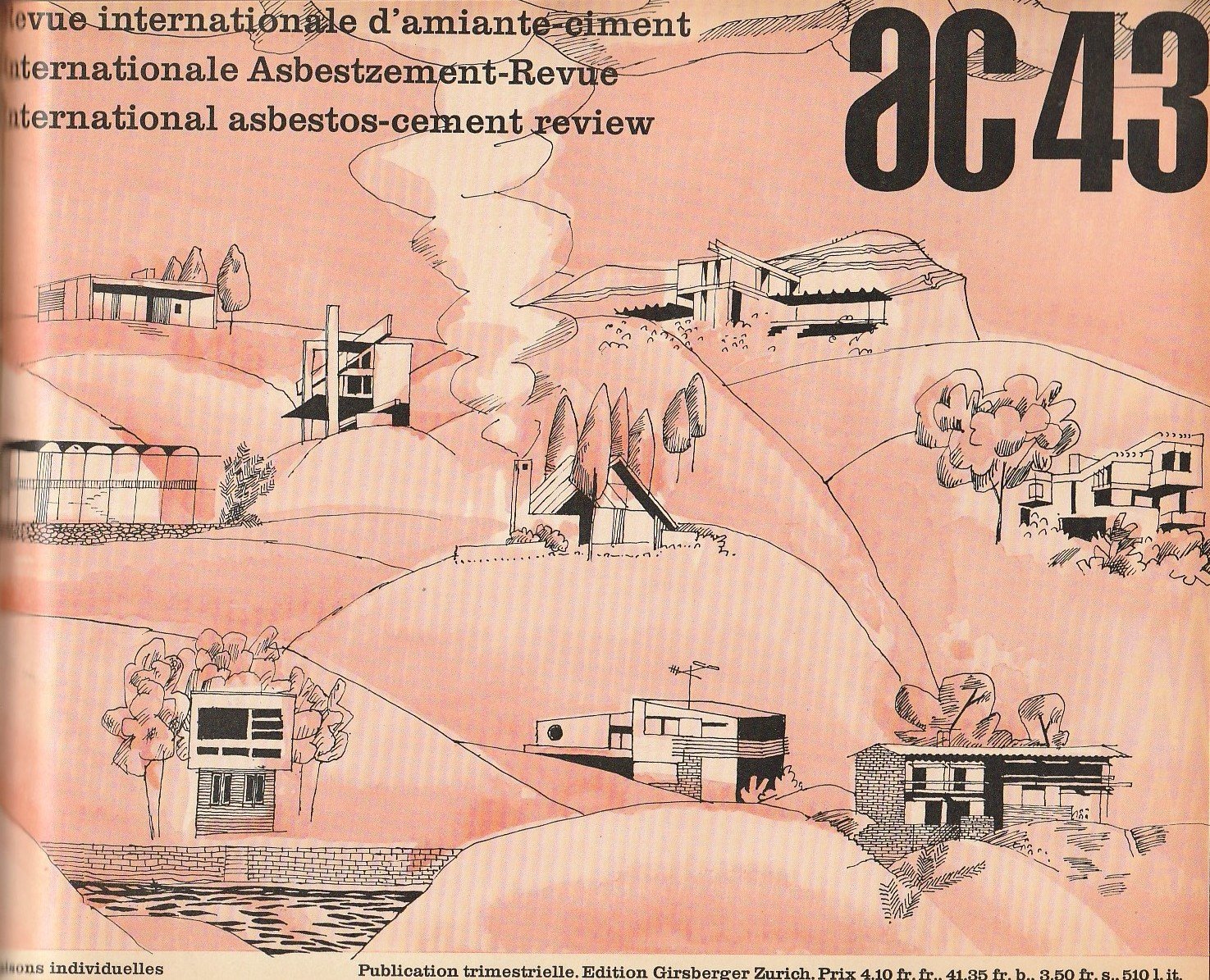 Rivista trimestrale. Legatura in piena tela rossa, titoli impressi in oro su tassello al dorso, conserva le copertine originali, testi in inglese, tedesco e francese, all'inizio di ogni numero è presente un sommario in italiano (col titolo tradotto "Rivista internazionale d'amianto-cemento") che riporta l'elenco e la spiegazione dei progetti contenuti nel fascicolo, numerose illustrazioni in b/n e a colori, in ottimo stato. I fascicoli provengono dallo studio BBBR, di cui è impresso il timbro al risguardo anteriore. Alla rivista, pubblicata in tutto il mondo, hanno collaborato negli anni importanti storici, critici e architetti nazionali e internazionali tra cui Siegfired Giedion, Finn Juhl, Albert Frey, Carlo Rusconi-Clerici, Pier Luigi Nervi, Richard Neutra, Otto Jager e Rino Levi.