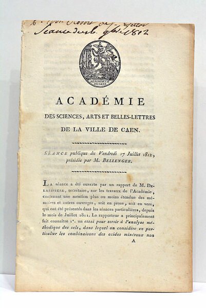ACADÉMIE DES SCIENCES, ARTS ET BELLES-LETTRES DE LA VILLE DE CAEN.