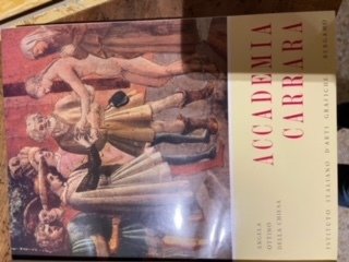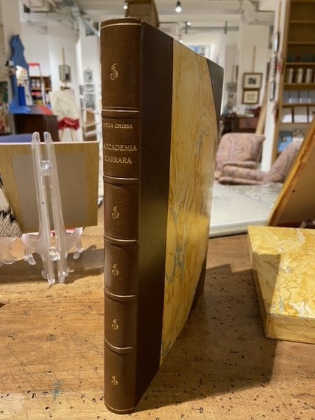 Edizione del 1967 rilegata con cofanetto incluso del libro 'Accademia Carrara' di Angela Ottino della Chiesa. Libro in ottime condizioni, illustrato anche a colori, pagine perfette e chiare. Cofanetto anch'esso in perfette condizioni. Copertina in semipelle e carta firenze come il cofanetto. Costa in alto in oro.