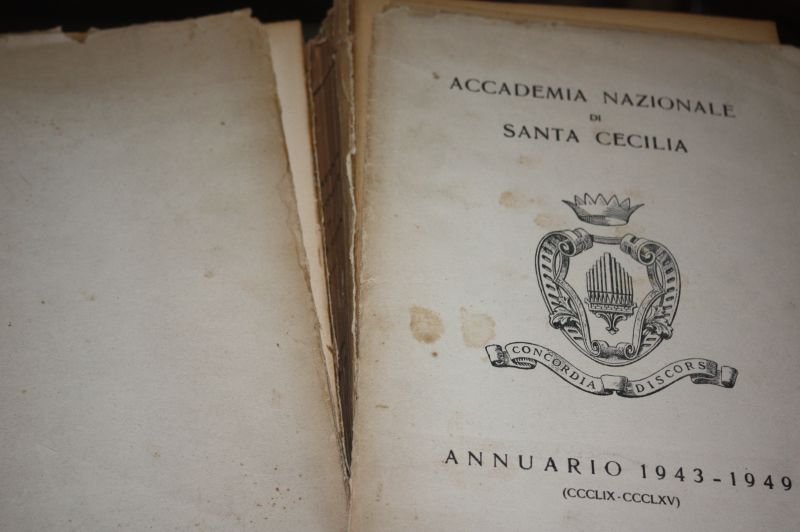 CODICE 2531, Accademia Nazionale Di Santa Cecilia Annuario 1943 1949, , ESEMPLARE CON FIRMA ALLA PRIMA PAGINA PAG 792, BROSSURA ROVINATA PIATTI STACCATI VARIE USURE ESEMPLARE DA RILEGARE, , MA PUR SEMPRE OTTIMO E ASSOLUTAMENTE RARO