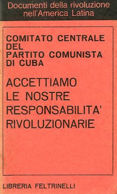 21 p. ; 18 x 11 cm. Documenti della rivoluzione nell'America Latina, 4. Il testo è la traduzione del resoconto stenografico, trasmesso per cablo dall'Avana, della risoluzione del Comitato centrale del Partito comunista di Cuba, approvata il 18 maggio 1967. Brossura editoriale, coperta in cartoncino flessibile colorato (nero/rosso). Codice libreria 6432.