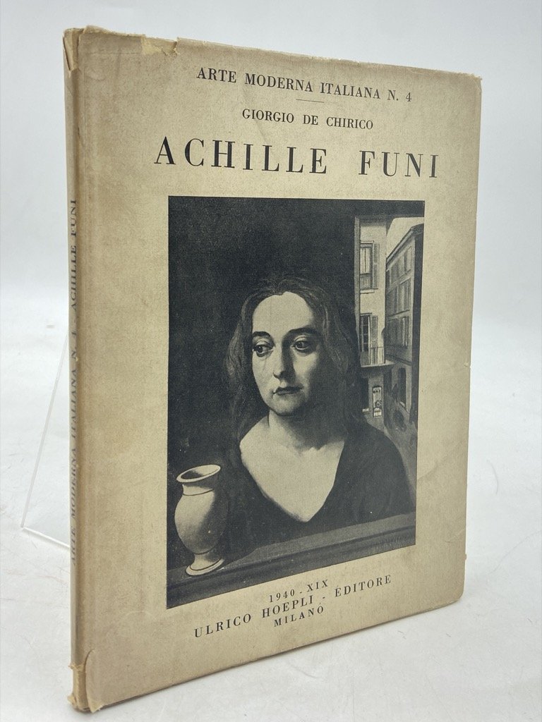Brossura editoriale con sovraccoperta illustrata, cm 17 x 12.5, pp 27 (5) + XXX tavole fuori testo inclusa l’antiporta a colori. Collana Arte Moderna Italiana a cura di Giovanni Scheiwiller, n. 4, Serie A, Pittori n. 3. Agile monografia sul novecentista ferrarese Achille Funi (1890-1972), con testo critico di Giorgio de Chirico, profilo biografico, bibliografia, e la riproduzione di 30 dipinti, per lo più ritratti, realizzati tra il 1913 e il 1940. Spaducci, p. 105; manca a Gambetti Vezzosi.