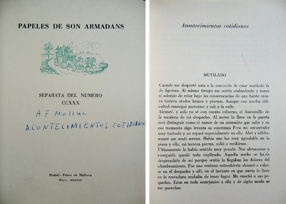 Palma de Mallorca, 1965 [Papeles de Son Armadans, Separata del Nº CCXXX]. 4to.menor; 6 pp. Cubiertas originales.