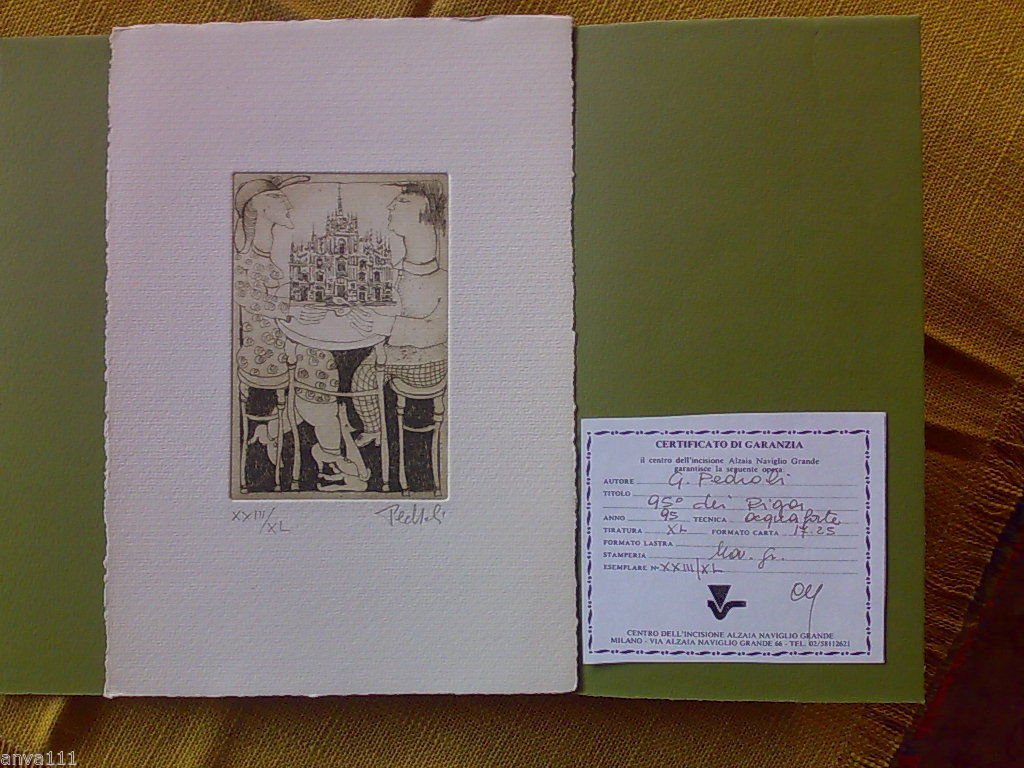 Gigi Pedroli Acquaforte di Gigi Pedroli. titolo: 95^ dei Riga. Milano, Centro dell' Incisione Alzaia Naviglio Grande 1995 italiano, 25 17 pp. L'opera è provvista di relativo certificato di garanzia rilasciato dal centro dell'incisione Alzaia Naviglio Grande.
