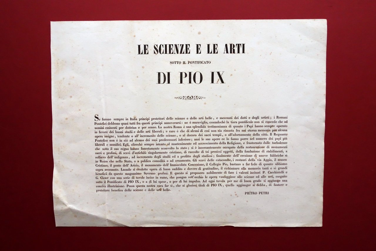 Acquatinta, Nuovo ponte di ferro sul Tevere nella linea di Civitavecchia" - acquatinta originale seconda metà dell'Ottocento circa Senza dati tip., s. d. ma seconda metà dell'Ottocento; acquatinta originale seppiata, realizzata su carta; didascalia descrittiva a stampa al margine inferiore. Retro bianco. Cm 29,5x38,5 (margine bianco); cm 23x28,5 (acquatinta). Accluso foglio descrittivo a stampa corrispondente all'acquatinta (vedi foto). Proveniente dall'opera Le scienze e le arti sotto il pontificato di Pio IX. Condizioni di conservazione Ben conservata con alcune lievi / leggerissime bruniture. Foglio descrittivo anch'esso ben conservato con alcune leggerissime bruniture. Margine sinistro dell'acquatinta e del foglio descrittivo con minime tracce di precedente rilegatura in volume; gli altri margini sono lievemente rifilati. Per ulteriori dettagli vedi foto. Bella acquatinta originale proveniente dall'opera "Le Scienze e le Arti sotto il pontificato di Pio IX". La pagina di presentazione dell'opera visibile in foto è allo scopo di presentare la pubblicazione da cui proviene l'acquatinta e non è acclusa (la tavola è venduta singolarmente, corredata del solo foglio descrittivo associato a essa). SC03.D18748 N F "
