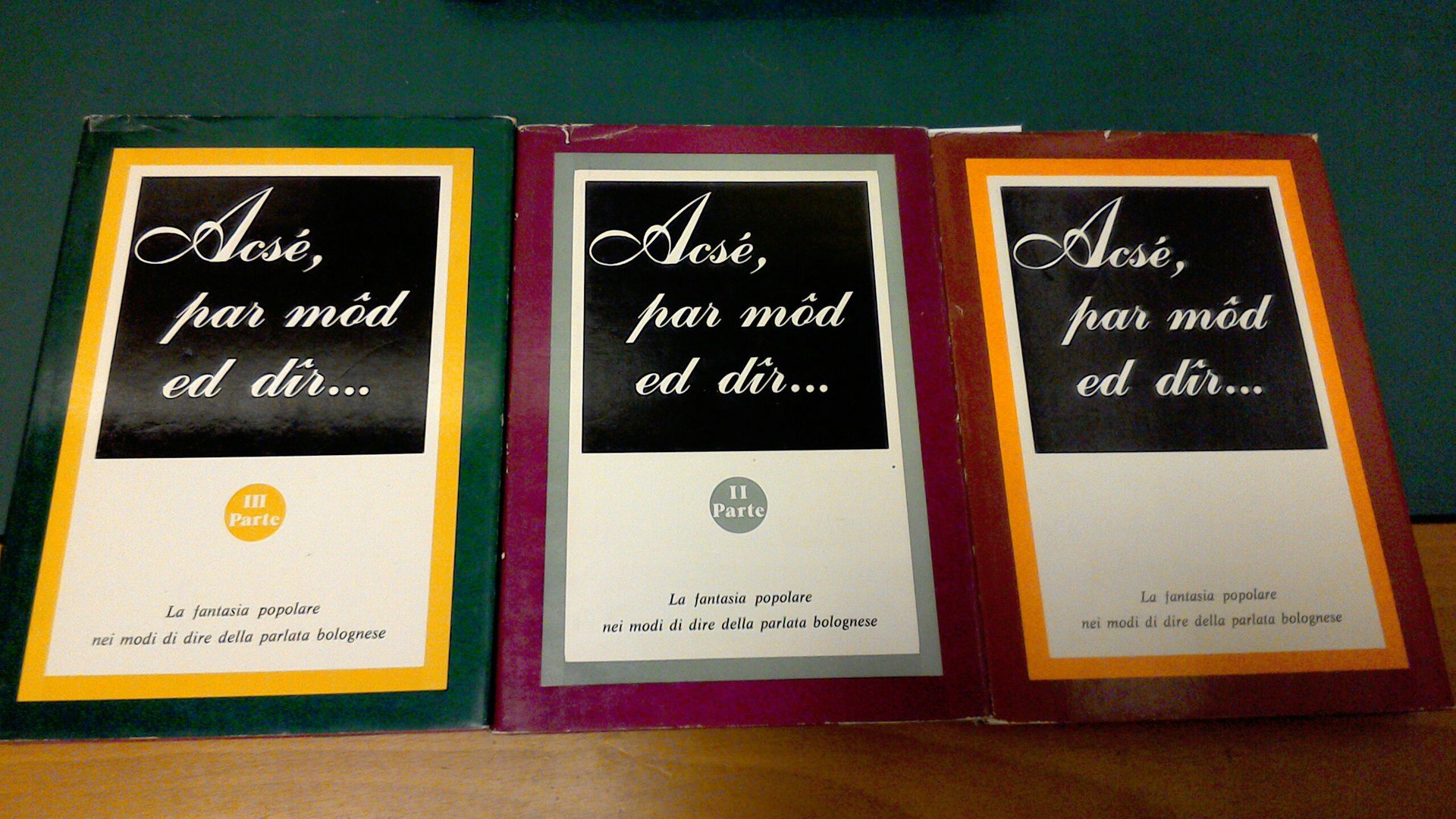 Volumi che raccolgono detti e modi di dire dialettali della fantasia popolare bolognese. Testo in dialetto, traduzione italiana, spiegazione del significato. Parte 1, parte 2 e parte 3.