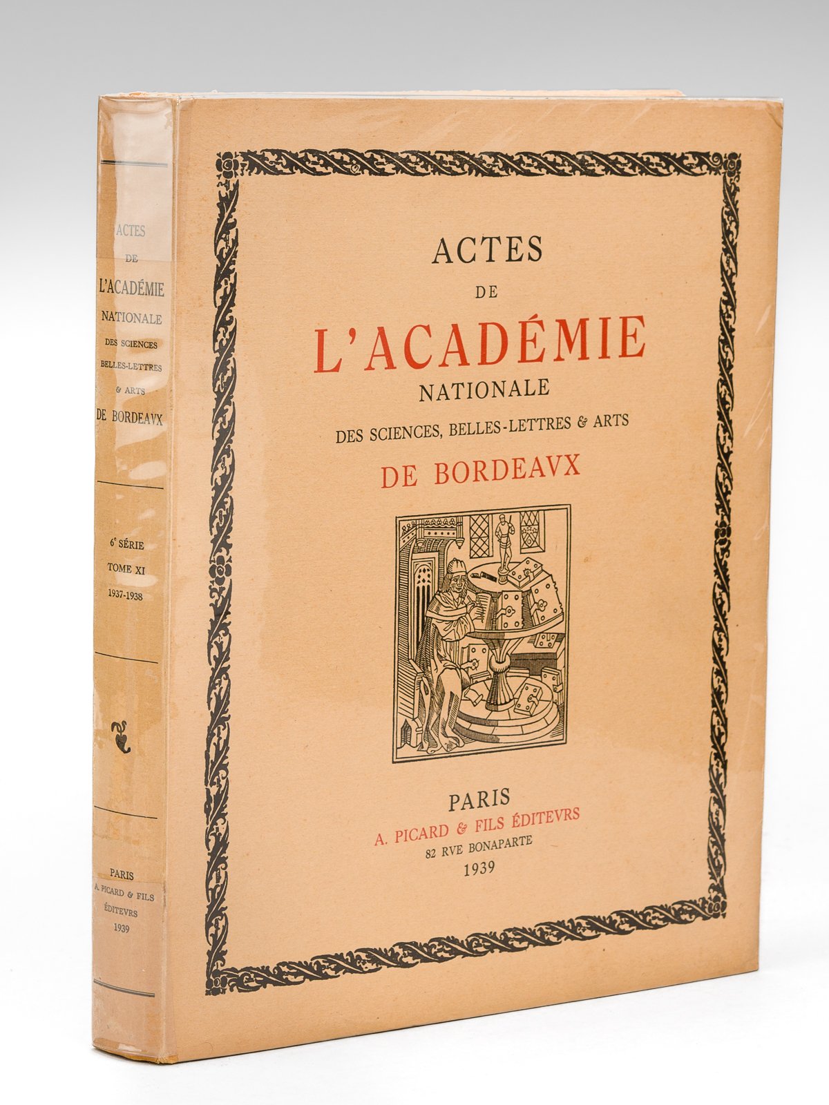 Rappel du titre complet : Actes de l’Académie Nationale des Sciences, Belles-Lettres & Arts de Bordeaux. Tome XI - 1937-1938 : La famille de Bordeaux et les premiers captaux de Buch, étude historique et généralogique (Meaudre de Lapouyade) - Les opinions politiques de Montaigne (Aymonier) - A propose de l’oeuvre de Mathieu Tillet (Feytaud) Bon exemplaire de ce tome contenant notamment l’importante étude sur les premiers Captaux de Buch.