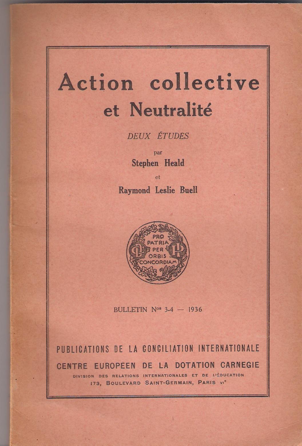 ACTION COLLECTIVE ET NEUTRALITE' DEUX ETUDES. 3 - 4 1936