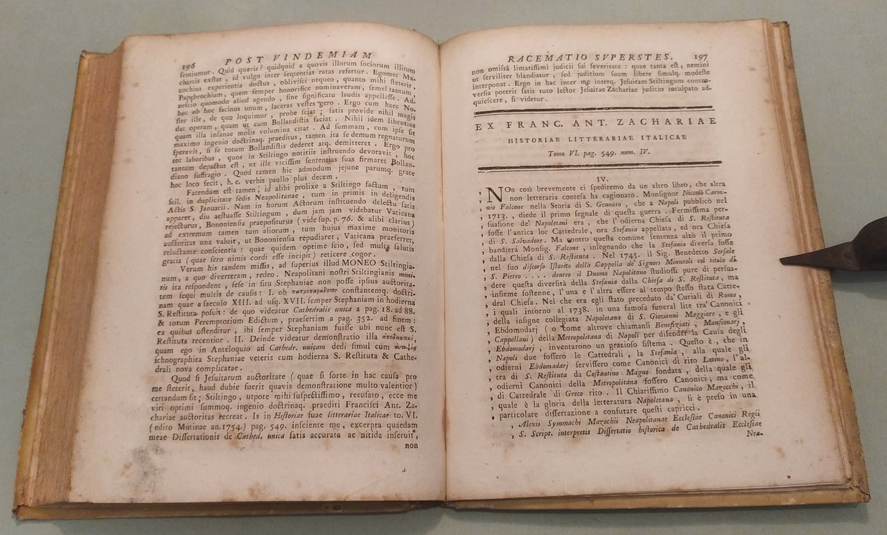 Neapoli, Ex Officina Josephi Raymundi, 1759. In 8vo; pp.4n.nn.,XII, 224. Pergamena coeva, lacerazione al piatto anteriore.