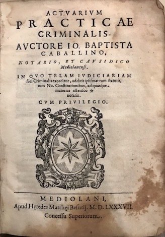 Actuarium practicae criminalis. Auctore Io. Baptista Caballino, notario, et causidico Mediolanensi.