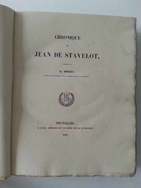 AD. BORGNET CHRONIQUE DE JEAN DE STAVELOT BRUXELLES M. HAYEZ 1861