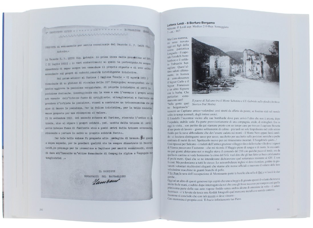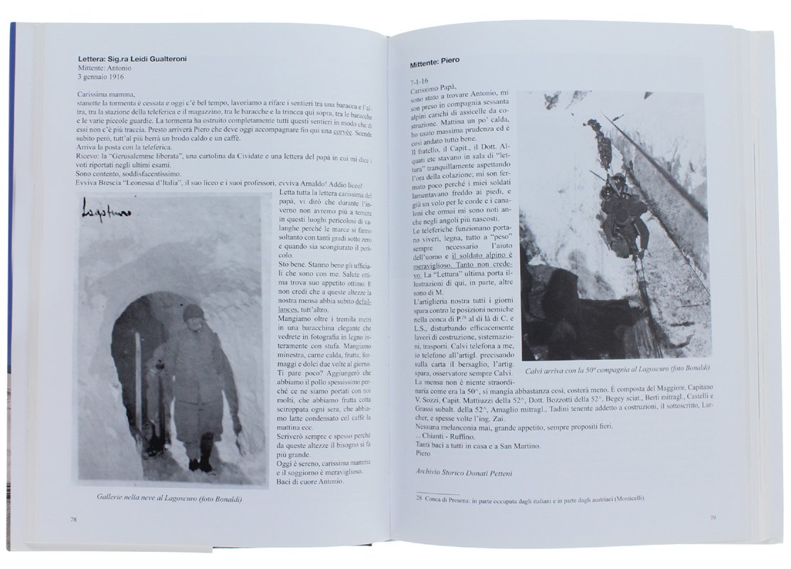 (Codice MG/5406) In 4º (30 cm) 304 pp. Prima edizione. Le vicende belliche attraverso le parole di tre alpini bergamaschi. Accurata ricerca storica basata su centinaia di lettere a familiari e amici, scritte nel periodo 1915-1919 da Antonio Leidi-V Alpini 50° Compagnia Edolo, Piero Leidi-V Alpini 50° Compagnia Edolo, Vittorio Leidi-Btg monte Pavione 95° Compagnia. Con 281 illustrazioni per la maggior parte inedite: fotografie, cartine, documenti. Grande volume, copertina rigida, legatura cartone editoriale, sovraccoperta. Stato di nuovo. ~~~ SPEDIZIONE IN ITALIA SEMPRE TRACCIATA