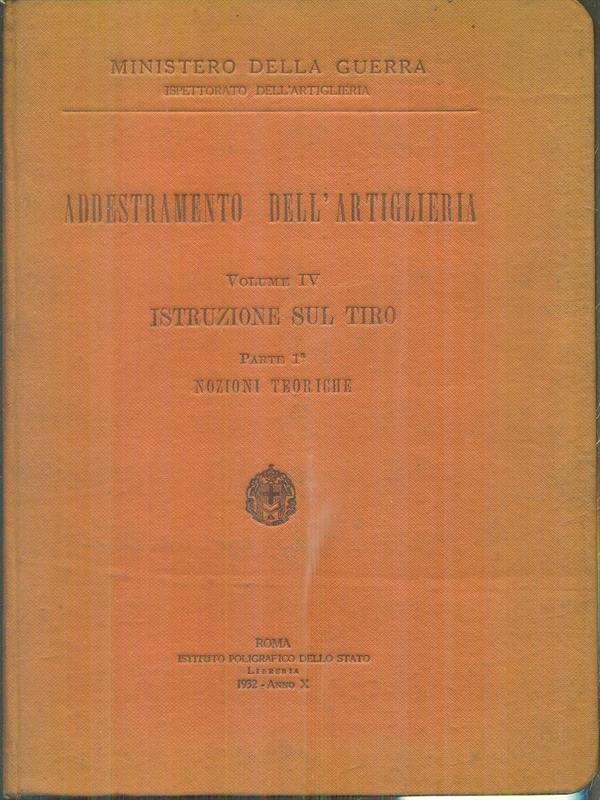 Addestramento dell'artiglieria vol. IV istruzione sul tiro parte 1 nozioni teoriche