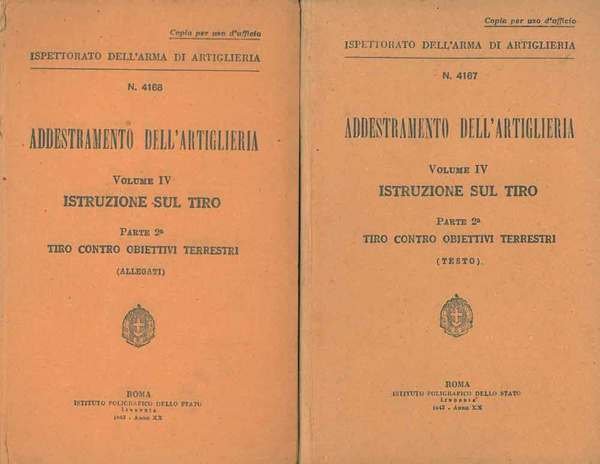 Addestramento dell'artiglieria. Vol. IV. Istruzione sul tiro. Parte 2°: Tiro contro obiettivi terrestri. Testo e Allegati