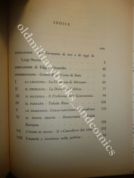 ADENAUER E LA NUOVA GERMANIA EDGAR ALEXANDER PREF. LUIGI STURZO PERFETTO STATO