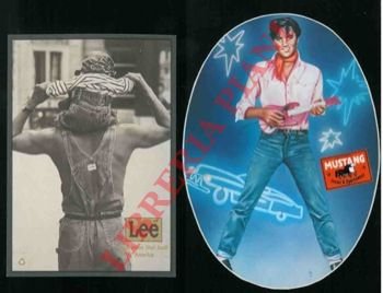 Album raccoglitore a fogli mobili con 30 adesivi pubblicitari di vario formato ma medio grandi, a colori, 1970/80 e tedeschi in prevalenza. ( Jeans.)