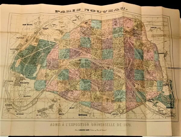 Admis à l'Exposition Universelle, Paris Nouveau 1878, Plan de Paris et de la Banlieue gravé sur acier d'après A. Vuillemin. Avec appendice des Rues de Paris et notice de renseignements indispendables.