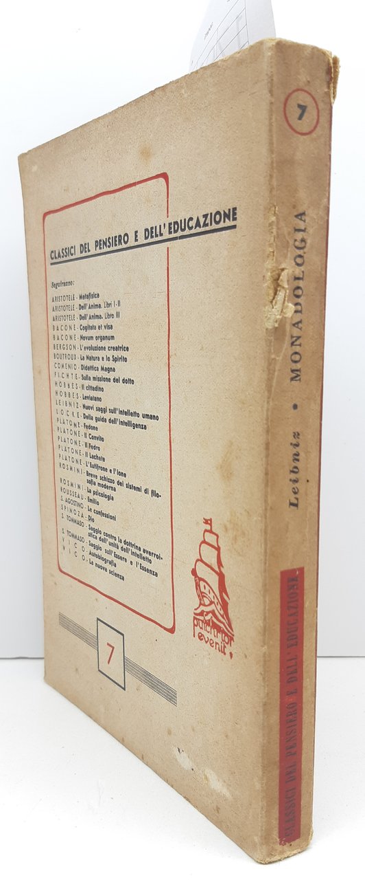 volume numero 7 della collana Classici del pensiero e dell'Educazione, legatura morbida editoriale in condizioni accettabili con bruniture e fioriture ai piatti e al dorso, dorso con uno strappo al margine interno tra dorso e quarta di copertina, un piccolo strappo al margine superiore del piatto anteriore di circa un centimetro, tagli bruniti con fioriture diffuse maggiormente presenti al margine superiore, seconda di copertina e antiporta brunita con fioriture diffuse, interno in discrete condizioni pagine leggermente brunite con fioriture che non vanno disturbare la lettura, numero pagine 174 dimensioni cm 18,5 * 13