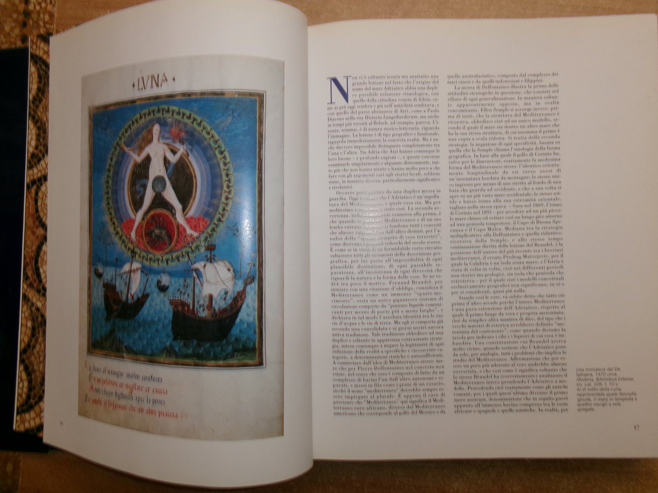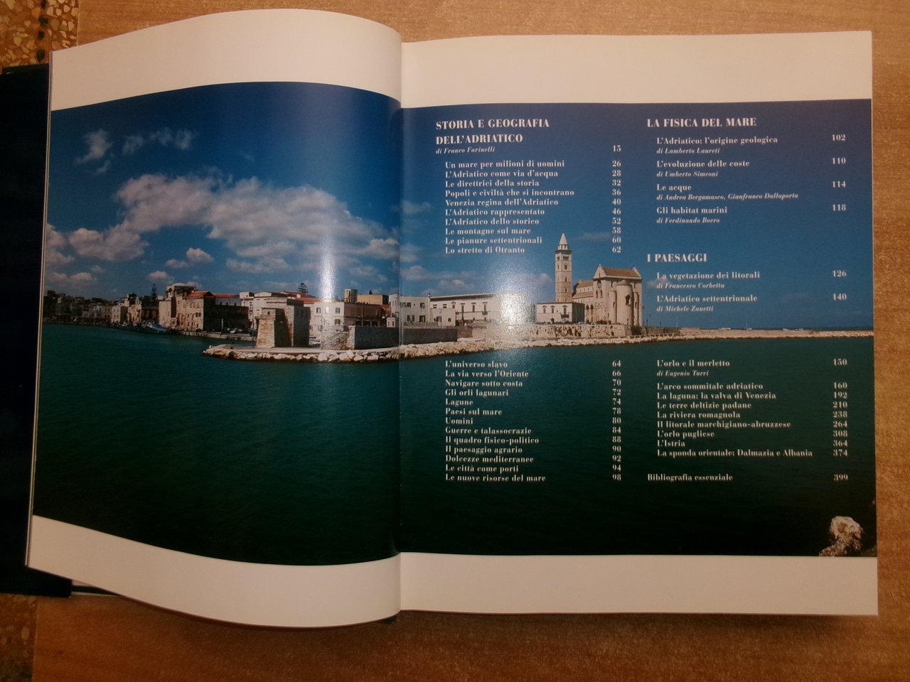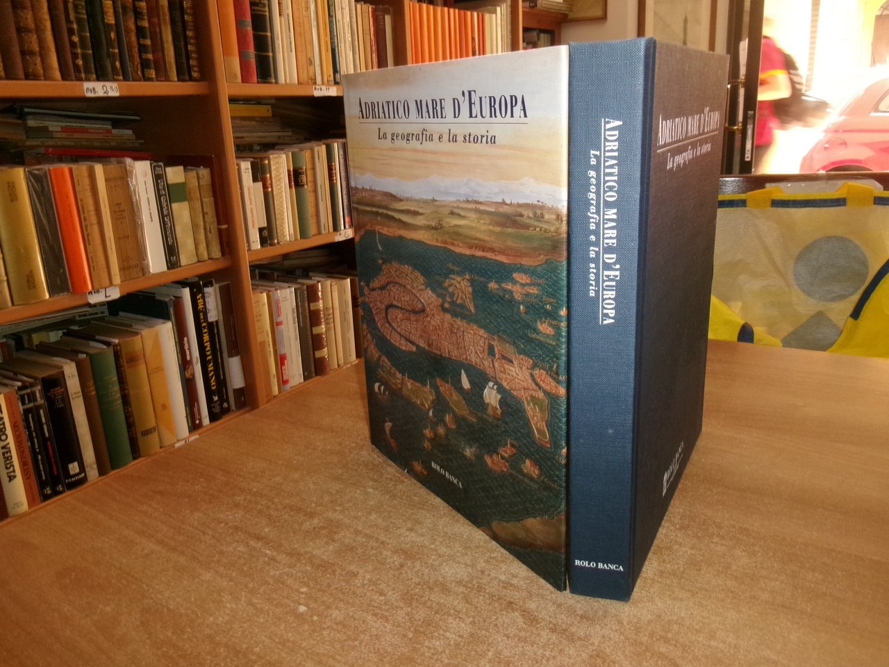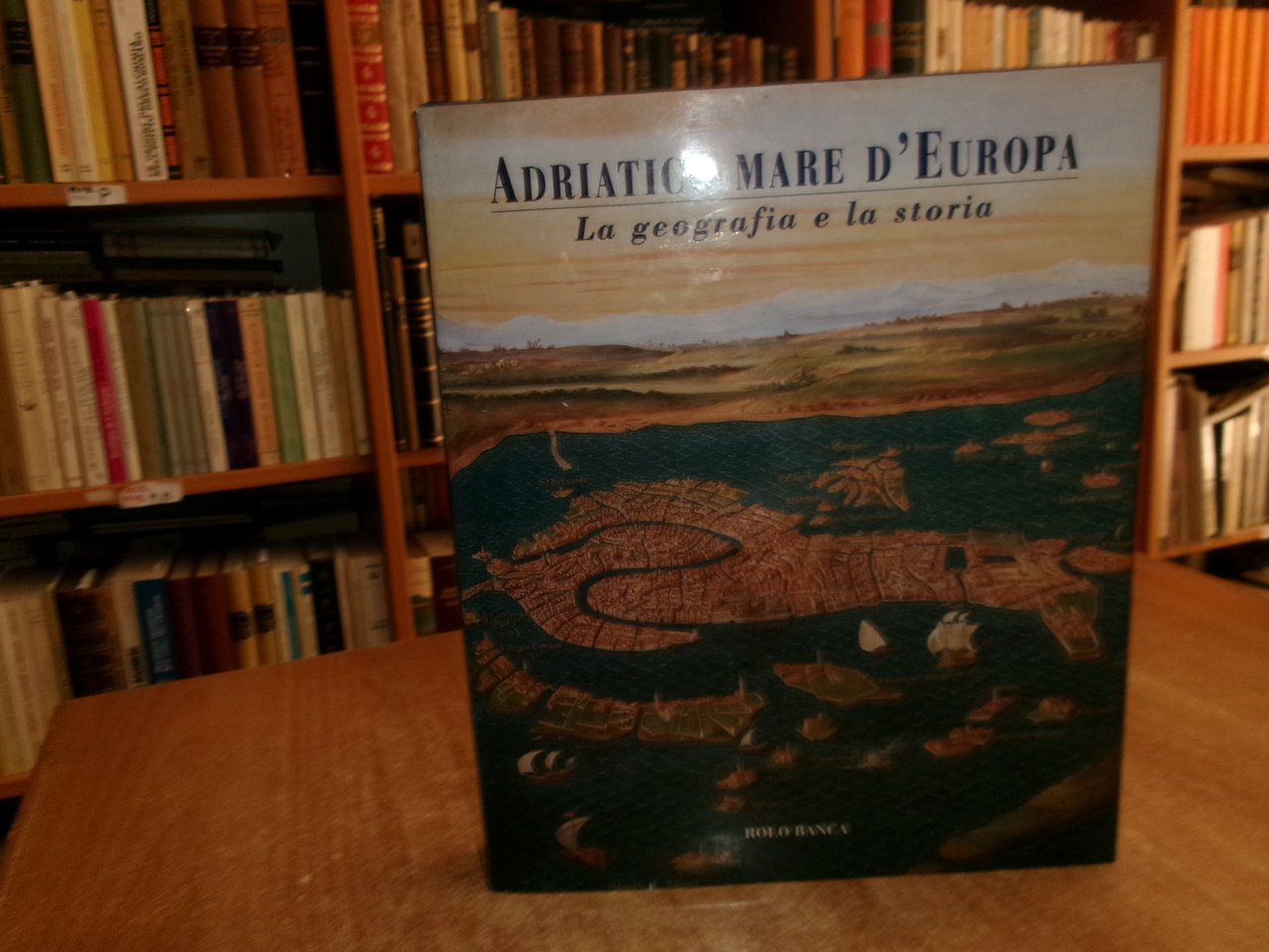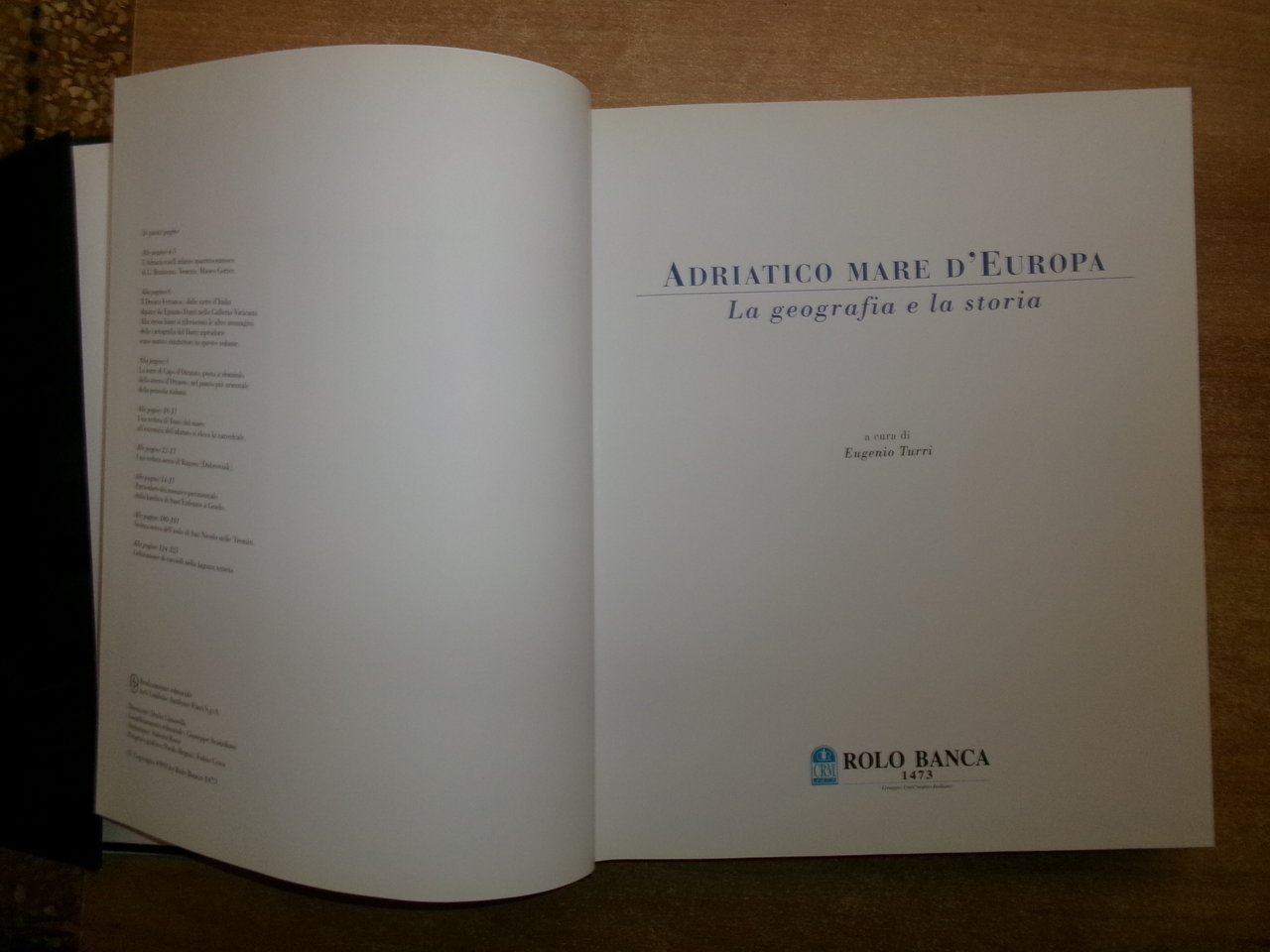 Adriatico Mare d' Europa la Geografia e la Storia. A cura di Eugenio Turri. Milano, Amilcare Pizzo per Rolo Banca. In-4°, tela edit. con sovracopertina ill. a col. 400 pp. con numerose illustrazioni a colori anche a piena pagina. Bell' esemplare. Neg. in alto sopra mob. 18
