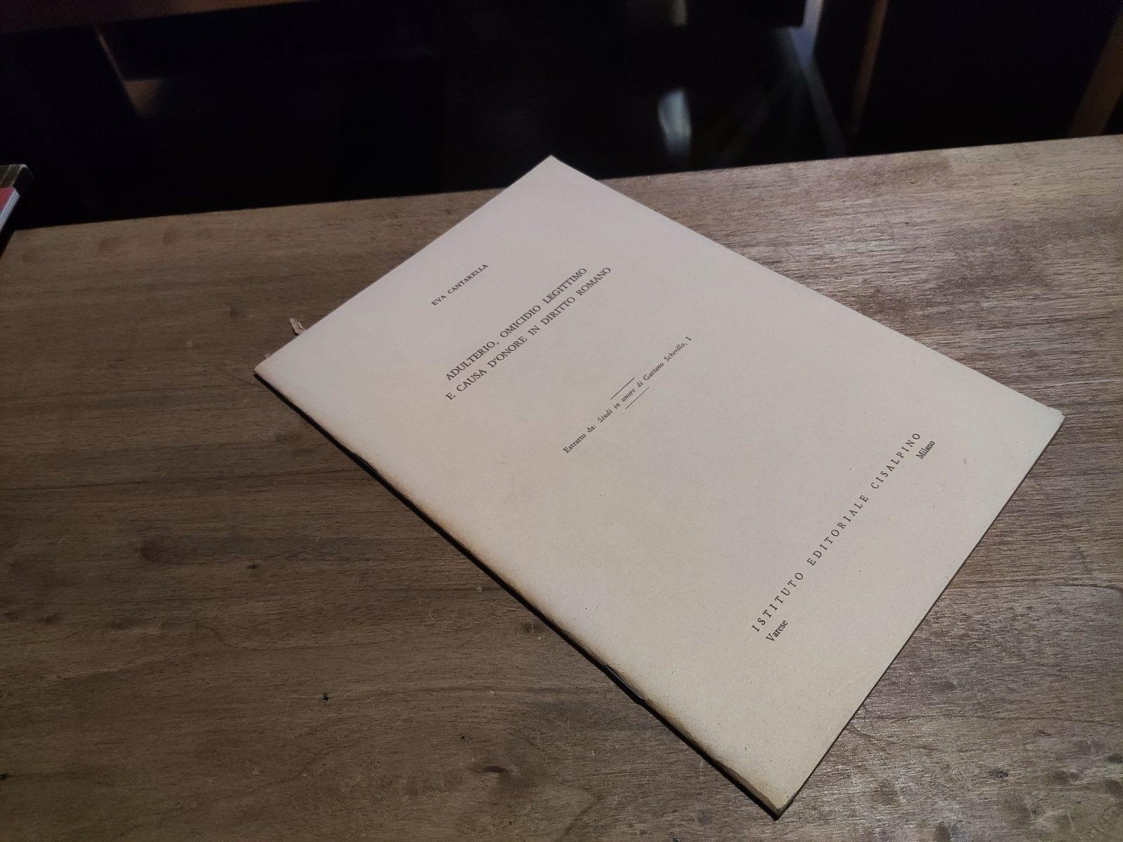 Eva Cantarella - Adulterio, omicidio legittimo e causa d'onore in diritto romano Cisalpino Estratto da: Studi in onore di Gaetano Scherillo I 32 pagine Libro in ottime condizioni, minimi segni del tempo. Non esitate a contattarci per altre foto o richieste. Saremo lieti di soddisfare ogni vostra esigenza.