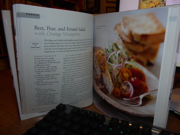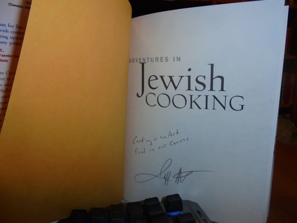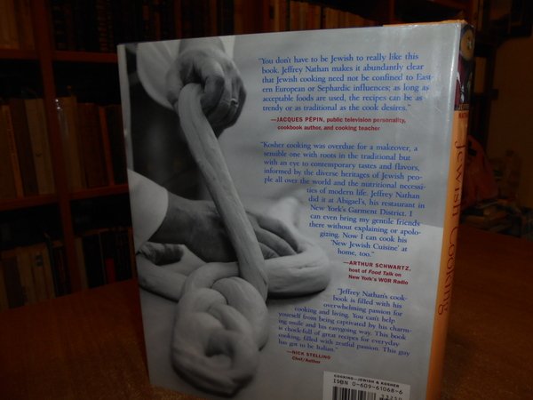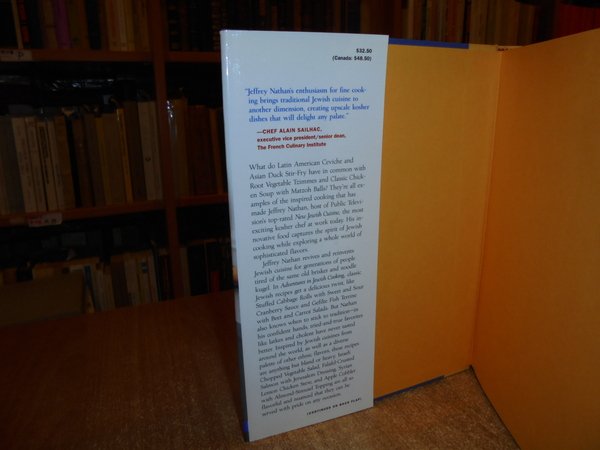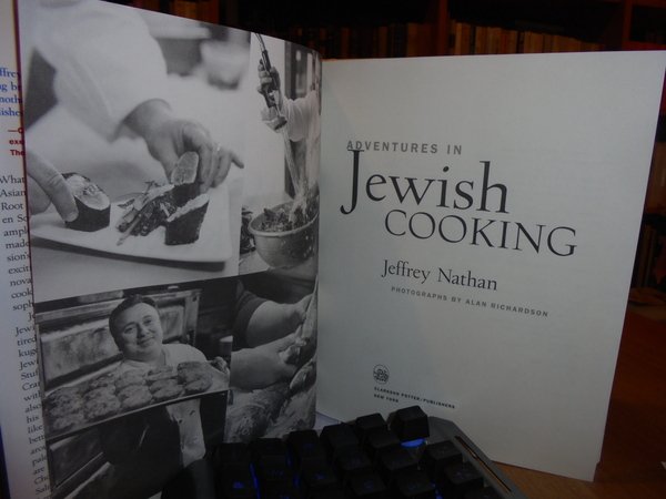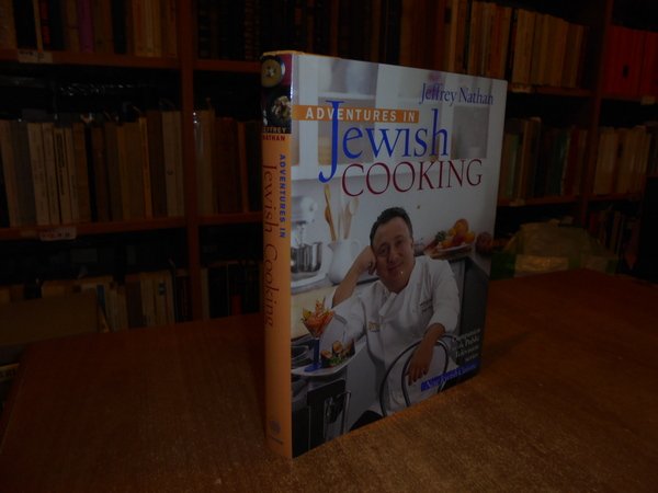 JEFFREY NATHAN. New York, Clarkson Potter, 2002. Adventures in JEWISH COOKING. In-8°, m. tela con titolo al dorso, sovracoperina ill. a col. 256 pp. con numerose illustrazioni in tavole a colori f.t. e in bianco e nero n.t. Libro dedicato a ricette gastronomiche. Come nuovo firmato dall' Autore. Uff. stanzetta mob. a sinistra carc.
