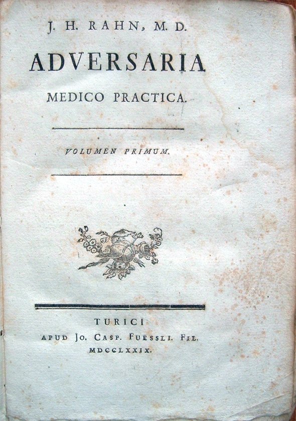 In-8° (21,3x14 cm), pp. (16), 408, copertina coeva in cartoncino ricoperto di carta, con titoli manoscritti al dorso. Normali segni d'uso alla copertina. Alcuni aloni e qualche macchia d'umido alle pagine. Nel margine inferiore del foglio con le pagine 3-4, lontano dal testo, strappetto (di 2 cm) ben rimarginato con carta giapponese. Nel foglio ospitante le pagine 7-8, nella parte inferiore, due piccole macchie d'inchiostro, una, di millimetri 8x4, che interessa due lettere dell'ultima riga di entrambe le pagine, lettere che rimangono, comunque leggibili, e una, di millimetr 3x2, nel margine bianco. Al foglio con le pagine 113-114, piccolo foro, ben restaurato, con reintegro, a matita, di tre lettere per pagina ("-mor-" nella parola "humoribus", nel sesto rigo di pagina 113 e "-cti-" nella parola "obstructionum", nel sesto rigo di pagina 114). Alle pagine 341-342, piccole macchie d'inchiostro. Normale patina del tempo alle pagine, con leggere arrossature a qualche pagina dovute al tipo di carta e all'inchiostro utilizzati. Per il resto, buon esemplare di rara opera. Il volume primo fu il solo pubblicato. Lo scritto illustra le proprietà del "cortex peruvianus", la Cinchona officinalis, la china (China China) e le sue applicazioni terapeutiche nella cura di varie malattie. Elenchus: Sectio I. Exponit historiam naturalem corticis peruviani; Locus natalis; Arboris descriptio; Corticis collectio; Characteres optimi corticis; Virtutis febrifugae detectio; Varia corticis fata; Vis ejus ad febres continuas praesertim putridas; Morbos nervorum; Morbos ex solidorum laxitate; Obstructionibus viscerum, humorum cacochymia oriundos; Ad haemorrhagias; Gangraenam; Extensa. Corticis analysis; Modus quo virtutem antifebrilem suam exerceat; Virtutis antisepticae reliquarumque ratio; Varii remedium adhibendi modi, remedii praeparationes, doses. Sectio II. Usum corticis in febribus intermittentibus speciatim docet. Cap. I. Virtus contra febres intermittentes specifica declaratur; Objectiones ejus usui oppositae refutantur; Praeparatio corporis ante ejus usum necessaria; Coticem exhibendi ratio, ratione temporis, praeparationis remedii, quantitatis, dosis, miscelae, continuationis; Usus remedii externus. Cap. II. Usus corticis in febribus intermittentibus complicatis; Et quidem cum exanthematibus; Cum morbis chronicis cacochymicis; Arthritide; Scabie; Lue venerea; Scorbuto; Ictero; Tympanitide; Hydrope; Phthisi. Cap. III. Usus corticis in febribus intermittentibus malignis; Soporosis; Convulsivis; Cum deliriis; Asthmate complicatis; Syncopalibus; Algidis; Diaphoreticis; Colicis; Cholericis et dysentericis; Remittentibus intermittentes simulantibus. Cap. IV. Usus corticis in affectionibus periodicis non febrilibus. Sectio III. Usus corticis in febribus continuis continet. Cap. I. Usus corticis in febribus continuis in genere; Et speciatim in febribus inflammatoriis; Biliosis; Biliosis putridis; Biliosis malignis; Verminosis; Pituitodis putridis; Putridis sanguineis; Febribus malignis; Nervosis lentis. Cap. II. Specialissime usus corticis docetur in febribus cum inflammationibus; Angina; Catarrhis; Pleuritide vel peripneumonia; Rheumatismis; Junctis. Cap. III. Usus corticis ad febres axanthematicas applicatur; Et quidem ad pestem; Variolas; Morbillos; Scarlatinam; Miliaria; Aphthas; Petechias; Erysipelas.
