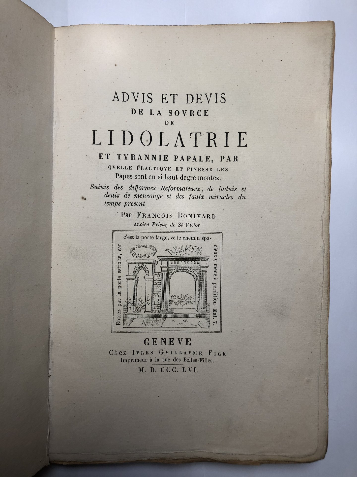 Première édition d’une œuvre du XVIe siècle (1562, jamais imprimée) de François Bonivard, noble et dignitaire de l’Église de Rome, devenant un patriote protestant défendant Genève contre les abus du duc de Savoie et des papes. Il est devenu pour Genève un martyr de la liberté et un symbole de l’indépendance de la ville. Membre du Conseil des Deux Cents de Genève, transformé en république réformée.