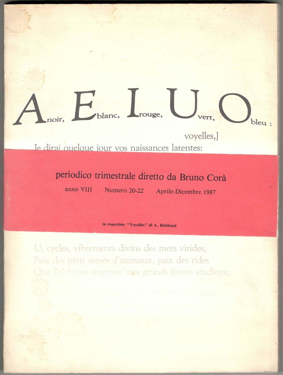 AEIUO. Rivista trimestrale diretta da Bruno Corà. Anno VIII. Numero 20-22. Aprile-Dicembre 1987