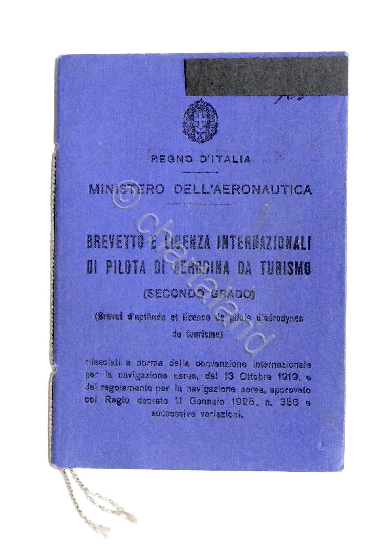 Aeronautica - Brevetto e Licenza Internazionali di Pilota di Aerodina da Turismo - 1950 All'interno dati personali e rinnovi annuali. Dimensioni: 10 x 15 cm. ca. Copertina rigida. Condizioni molto buone. Copertina come da foto.