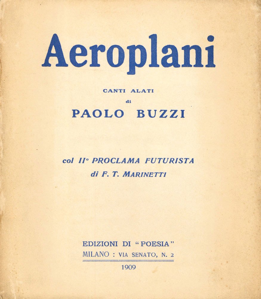 Aeroplani. Canti alati di Paolo Buzzi col II° Proclama futurista di F.T. Marinetti [Uccidiamo il chiaro di luna!]