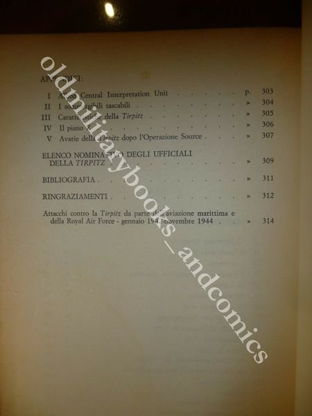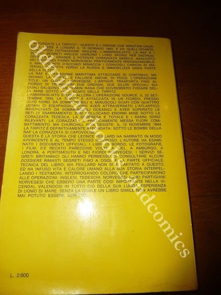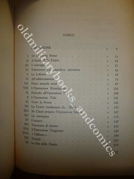 DESCRIZIONE: Sugar Editore Milano 1967 I^ Ed. br. ed. ill. con num. ill. f.t. e paintine pp. 318 in 8°. Storia dettagliata dei tentativi inglesi di affondare la Tirpìtz, nascosta nei fiordi norvegesi. Bel libro, molto ben documentato, che narra con dovizia di notizie e particolari, l'affondamento della corazzata tedesca e delle operazioni di salvataggio degli uomini dell'equipaggio intrappolati all'interno della nave capovolta. Indice completo in foto. CONDIZIONI: Discrete, vol. con evidenti segni d'uso, piccolo danno alla parte alta a destra, tracce di fox all'interno. PESO / WEIGHT: 475 gr. without package