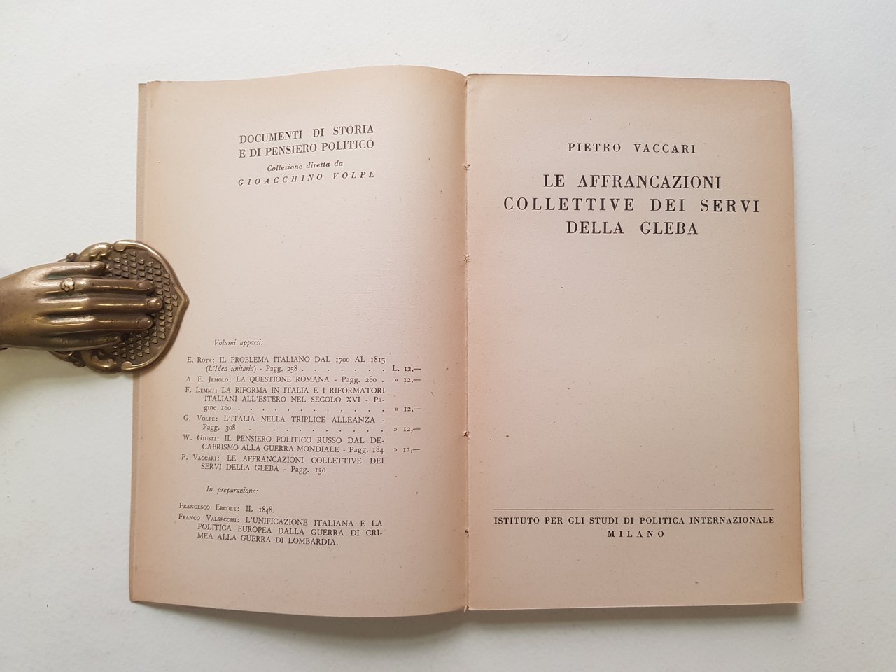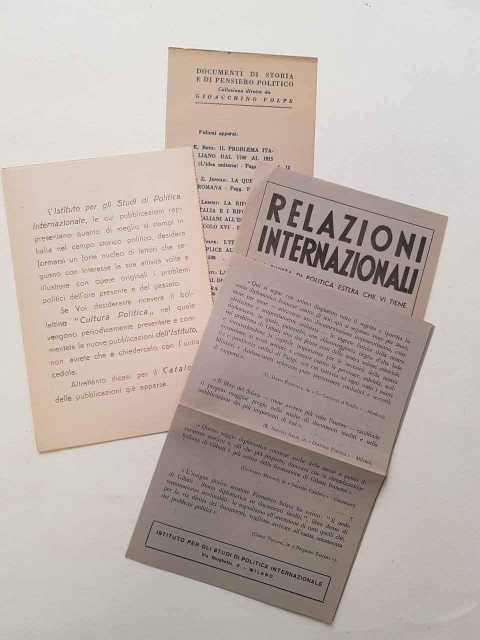 Documenti di storia e di pensiero politico.<BR>Conservati all'interno cartoline editoriali dell'Istituto<BR>In 16°; pp. 133; brossura editoriale; cucito.<BR>CONDIZIONI ABBASTANZA BUONE: piccola perdita al piatto anteriore, consueta ingiallitura delle pagine dovuta alla qualità della carta.