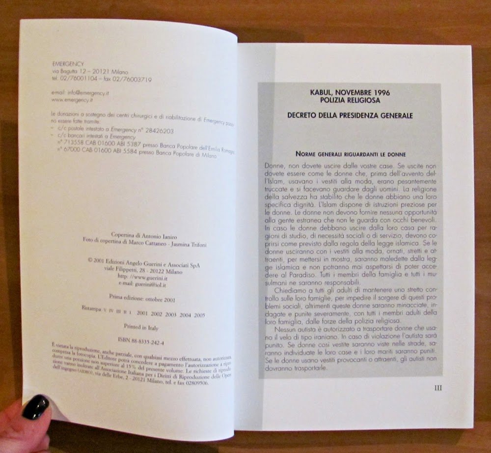 Introduzione di Gino Strada. Illustrazioni fotografiche in b/n n.t. Ed. Guerini e Associati - Milano, 2001. Brossura editoriale. 14x21; pp.165+2 pag. di "Piccola Storia Afgana" di Vauro. STATO di NUOVO , Ottimo (Fine)