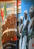 Coperta cartonata rigida con titolo oro su tassello blu contenente 16 fascicoli della rivista ’’Africa Parla’’ dal numero 1 al n. 16 con illustrazioni in nero e a colori. Formato cm. 36,5 x 28 e pagine 400. Fotostoria delle guerre coloniali, delle esplorazioni e delle navigazioni italiane nel continente nero. La fotografia pubblicata è del fascilolo n. 14. Ottime condizioni. V410