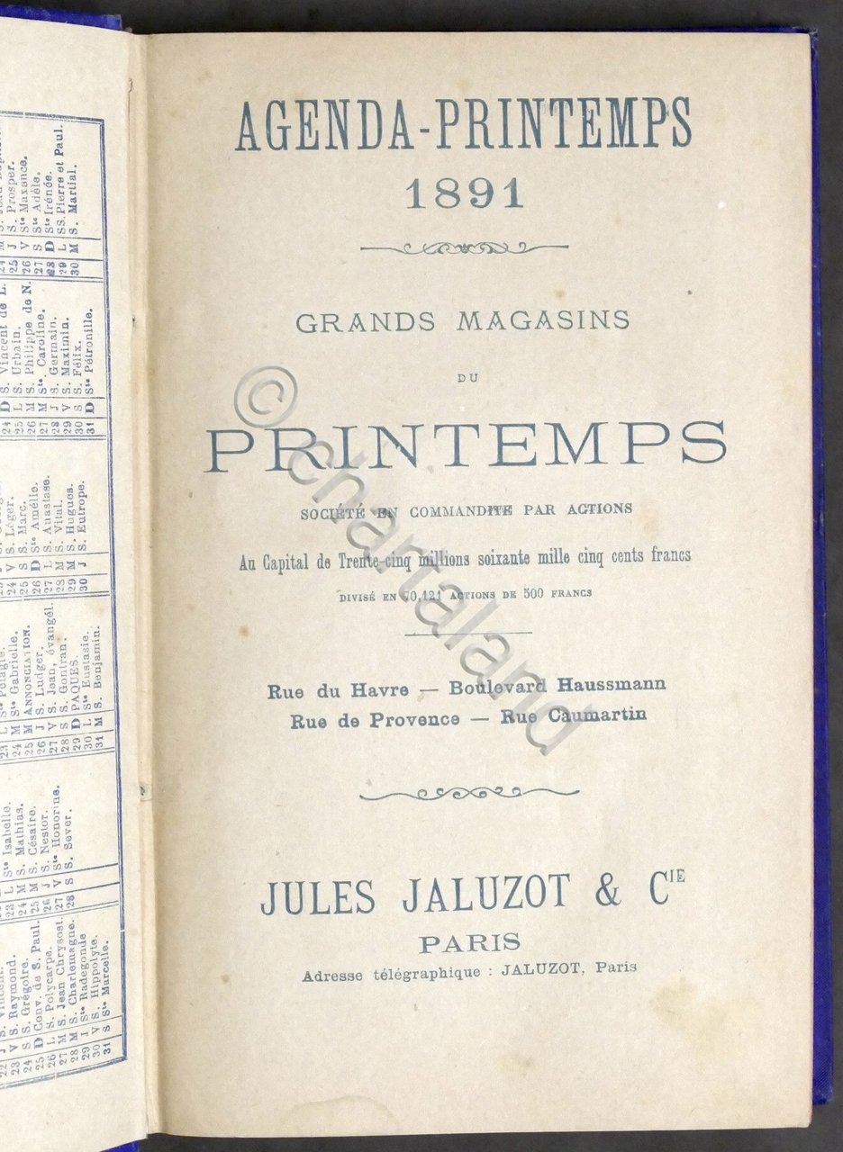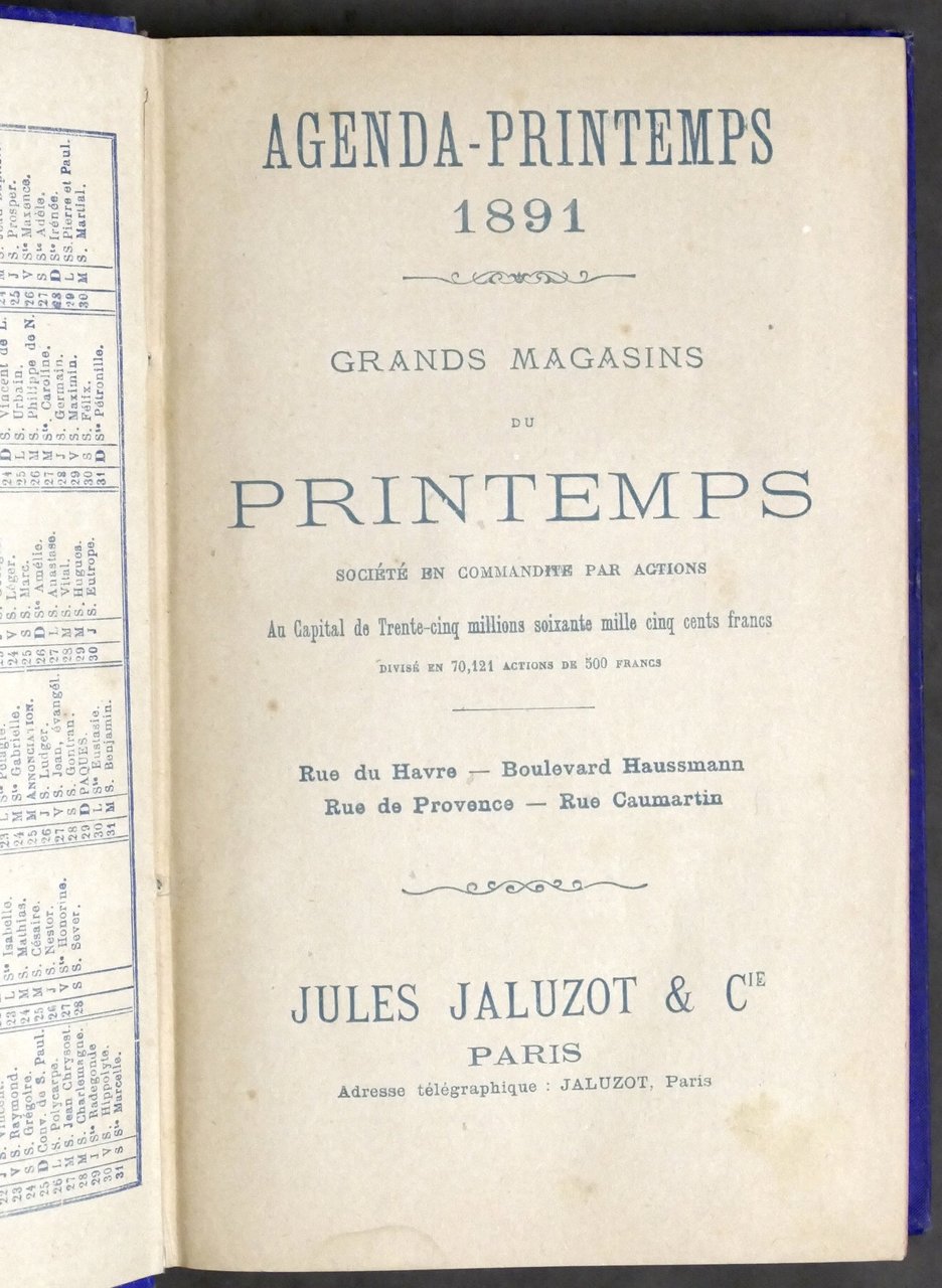 Agenda Printemps 1891 - Grands Magasins du Printemps