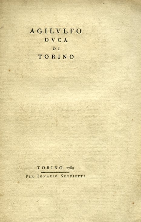 In-8°, pp. 24, editorialmente privo di legatura. Alcune fioriture e aloni. In barbe, ben conservato. Anonimo scritto su Agilulfo, consorte di Teodolinda, Re dei Longobardi e Re d'Italia dal 591 al 616. La scheda catalografica di SBN / ICCU attribuisce lo scritto, molto raro, al Cara de Canonico.