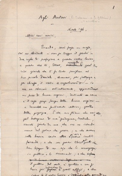 “Agli Autori”. Testo in prosa autografo firmato. Datato “Natale 1896”