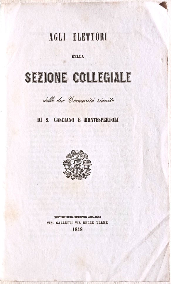 Agli elettori della Sezione collegiale delle due Comunità riunite di S. Casciano e Montespertoli.