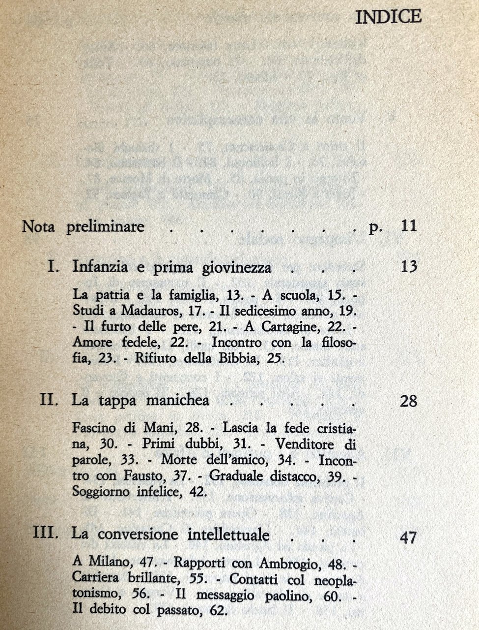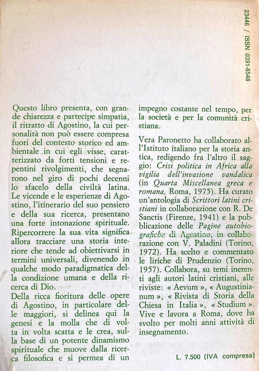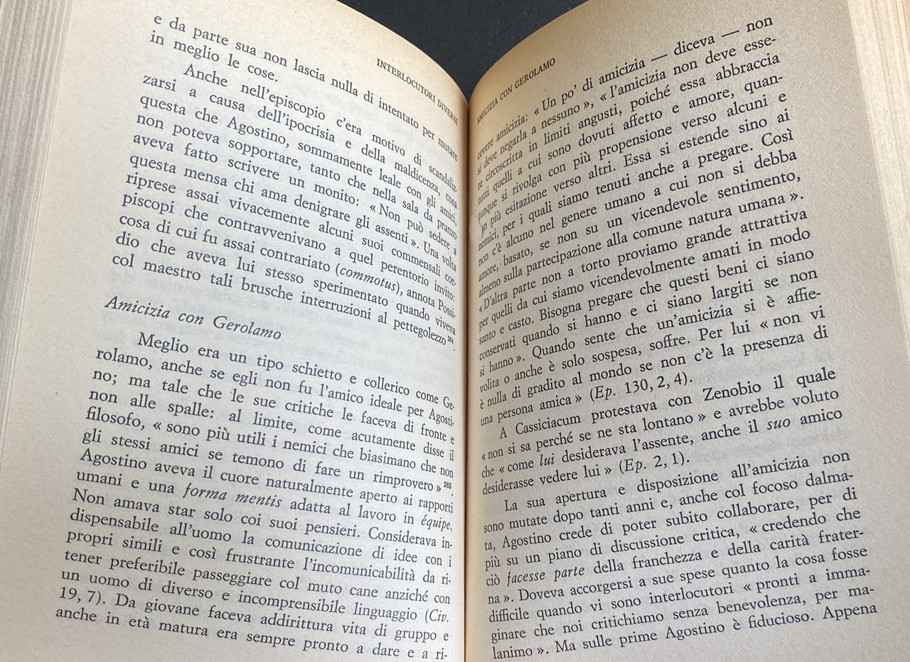 Soggetti: Sant'Agostino d'Ippona Le confessioni Religione Cristianesimo Biografia Opere generali Teologia Chiesa Patristica Padri Spiritualità Lettere Soliloqui Ferruccio Ulivi Letteratura cristiana Neoplatonismo Paganesimo Impero romano Ateismo Conversione Biografie Vita Cartagine Africa De Civitate Dei Ambrogio Simmaco Benozzo Gozzoli Milano Andresen Bibliografia Riferimento Libri Vintage fuori catalogo Bulletin Moricca De Labriolle Amatucci Romanelli Mazzarino Poujoulat Piganiol Seneca Orosio Arnobio Gerolamo Epistole Salmi Libero arbitrio Dogmatica Soliloquia Trinitate Patrologia latina Pauly Wissowa Sermoni Zenobio Gallia Barbari Invasioni barbariche Vandali Sacco Assedio Contra Symmachum Bibbia Madaurus Filosofia Fausto Mani Tagaste Monica Confessioni Umili Giovanni Cesarea Sassi Marcellino Commento Violenza Predicazione pelagiana Successione Grazia Salvezza Giuliano Scolastica Commentario Critica Interpretazione Gnoseologia Cattolicesimo Scetticismo Dialogo Esistenza Prova Incomunicabilità Fulbert Cayré Ch. Boyer Dibattiti Problemi filosofici Dottrina sociale Attualità Ascesa Trinità Fede Mistero Cogitatio Notitia Anima Esegesi biblica Genesi Bene Male Città di Dio Amare Sentimenti Solidarietà Altruismo Psicologia Sociologia Sacrifico Dono Agire Azione Generosità Reciprocità J.P. Migne Bullettin Augustinienne Philosophie Contemplazione Neoplatonismo Verità Paideia Didattica Collezionismo Romani Metafisica Poligamia Paganesimo Schiavitù Manicheismo Matrimonio Pensiero Gaspare Mura Concezione Uti-frui Saint Augustine of Hippo Confessions Religion Christianity Biography General Works Theology Church Patristics Fathers Spirituality Letters Soliloquies Christian Literature Neoplatonism Paganism Roman Empire Atheism Conversion Biographies Life Carthage Ambrose Symmachus Bibliography Reference Out of print books Orosius Arnobius Jerome Epistles Psalms Free will Dogmatics Latin patrology Sermons Zenobius Gaul Barbarians Barbarian invasions Vandals Sack Siege Bible Philosophy Confessions Humble John Caesarea Stones Marcellinus Commentary Violence Pelagian preaching Succession Grace Salvation Julian Scholasticism Commentary Criticism Interpretation Gnoseology Catholicism Skepticism Dialogue Existence Proof Incommunicability Debates Philosophical problems Social doctrine Current events Ascent Trinity Faith Mystery Soul Biblical exegesis Genesis Good Evil City of God To love Feelings Solidarity Altruism Psychology Sociology Sacrifice Gift Act Action Generosity Reciprocity Contemplation Neoplatonism Truth Paideia Didactics Collectibles Romans Metaphysics Polygamy Paganism Slavery Manichaeism Marriage Thought Conception