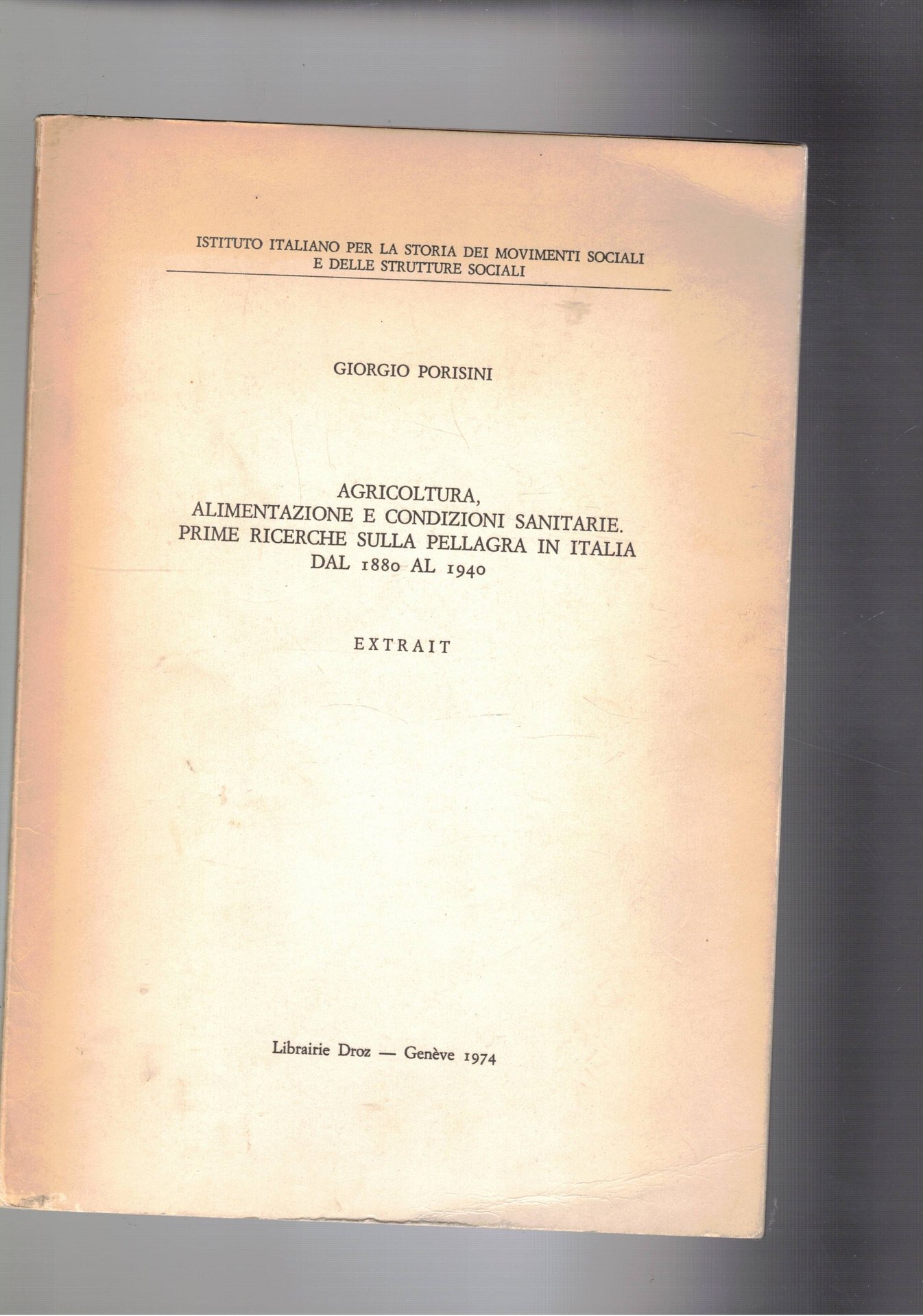 Agricoltura, alimentazione e condizioni sanitarie. Prime ricerche sulla pellagra in Italia dal 1880 al 1940. Estratto testo più appendice statistica.